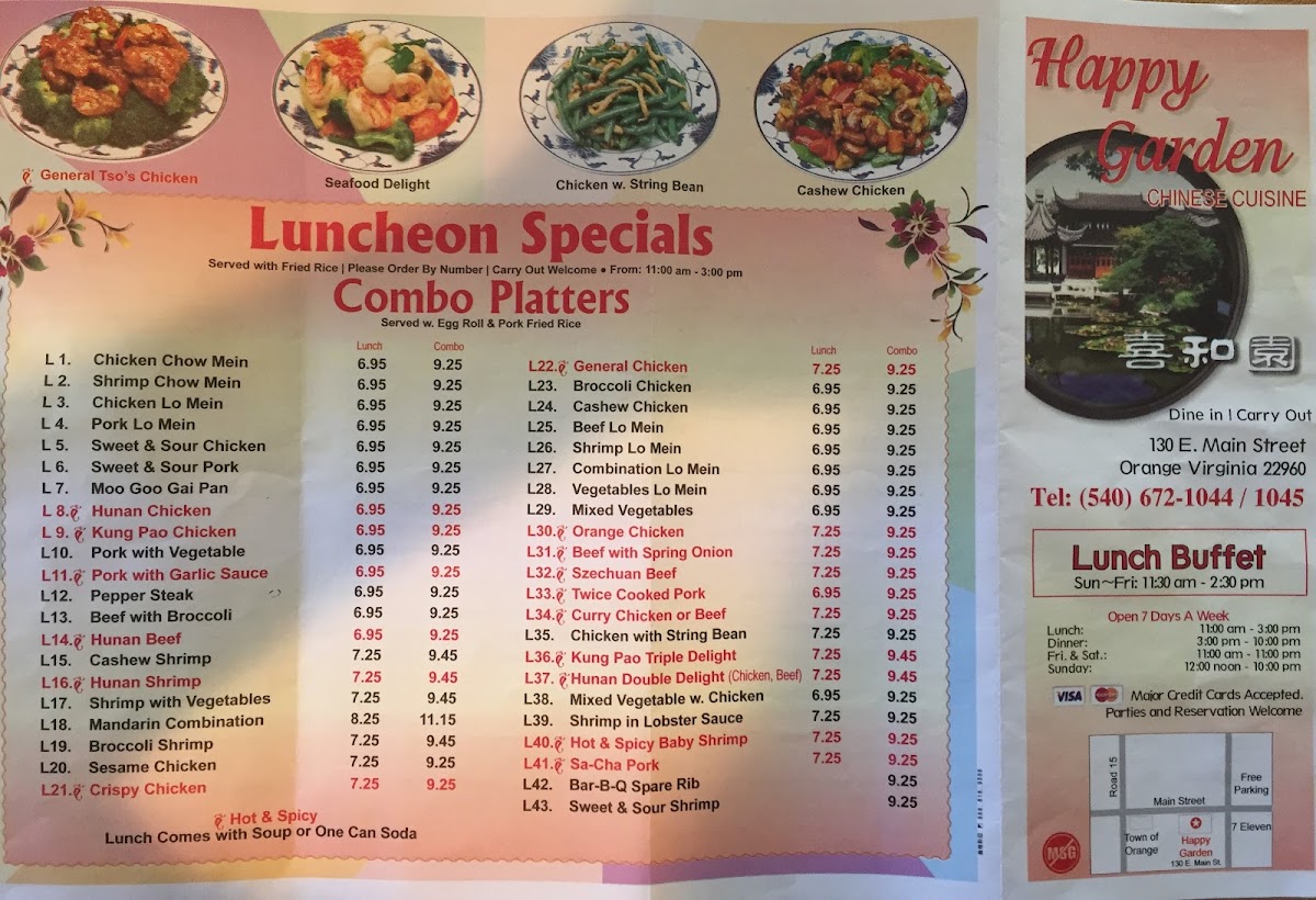 The menu at Happy Garden offers a straightforward and satisfying selection of classic Chinese dishes, crafted to suit both casual lunches and relaxed dinners. Whether you're stopping in for a comforting bowl of chop suey or a flavorful combo platter, the dishes present familiar flavors that are easy to enjoy any day of the week.